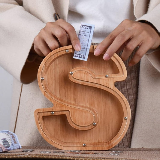 Alcancía de Madera en Forma de Letra: Estilo y Ahorro en Cada Detalle